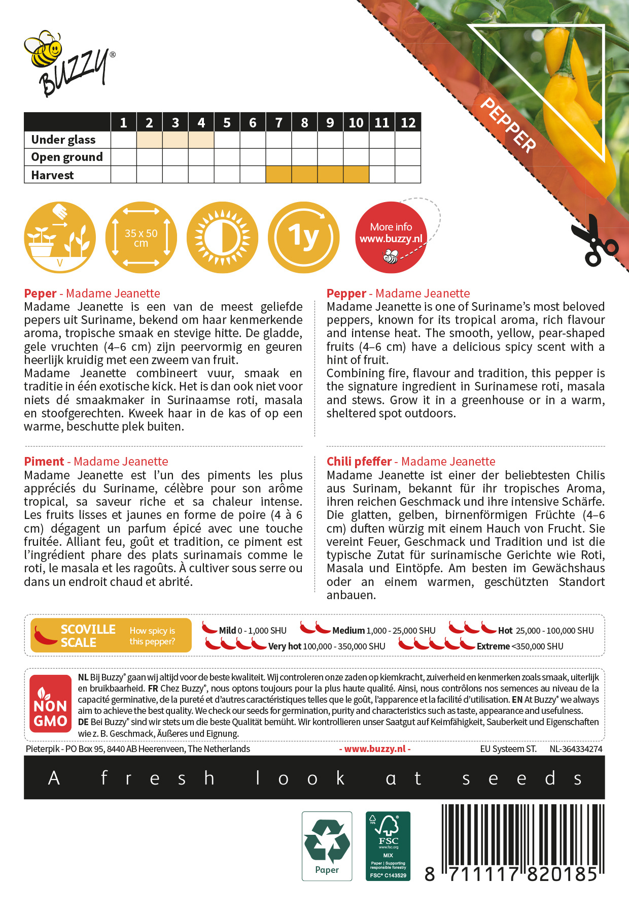 Buzzy® Madame Jeanette Peperzaden – Zeer Hete Surinaamse Chili 4/5 – Tropisch & Fruitig